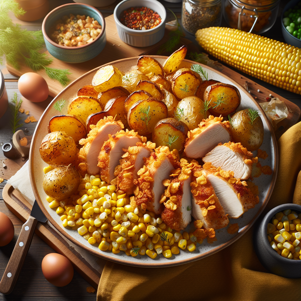 Effortless Comfort Food Meal Prep: Lose Weight with Cornflake Chicken, Potatoes, and Corn!